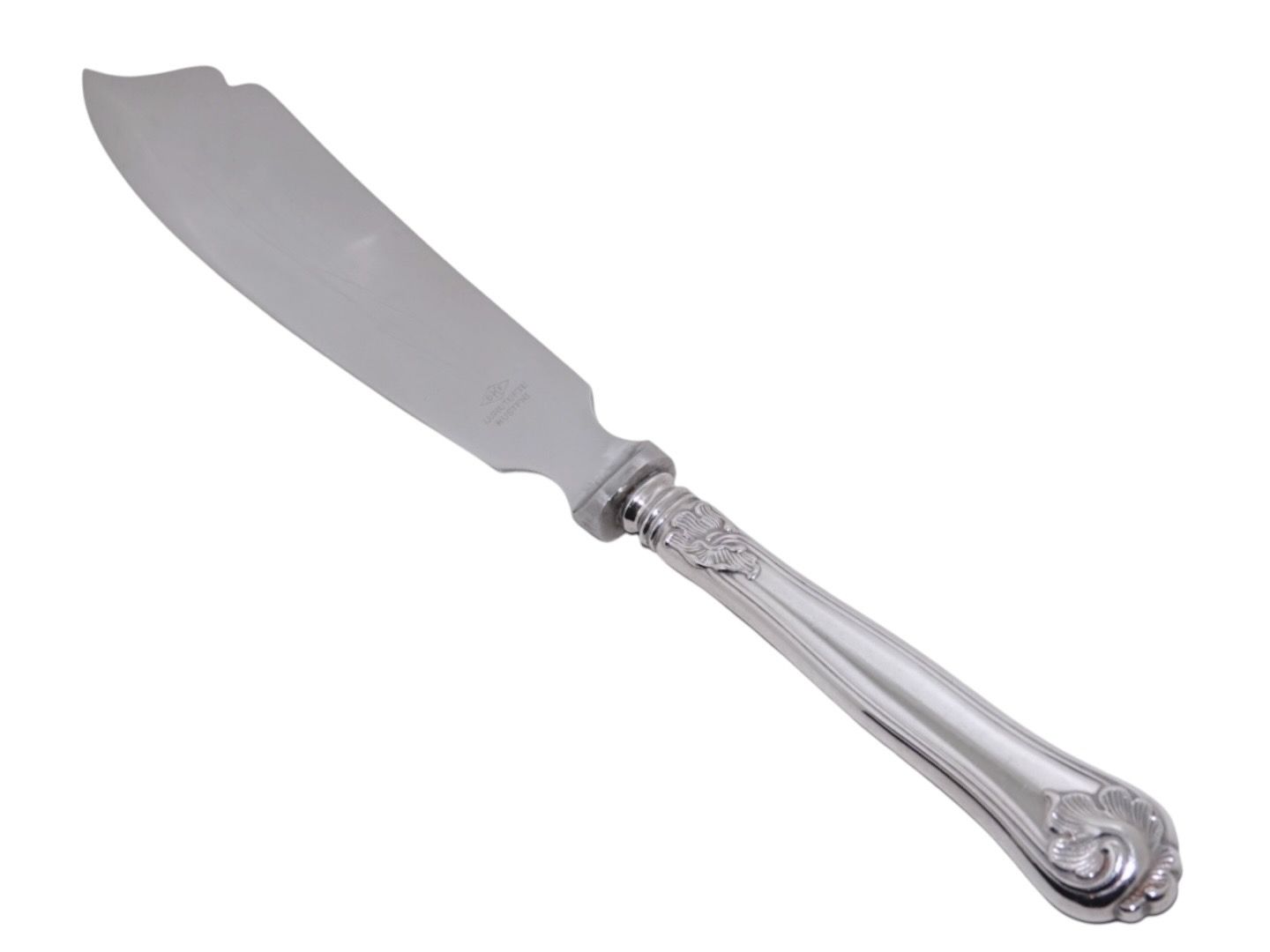 Saksisk Blomst tretårnet sølv og rustfrit stål fra Cohr, lagekagekniv.Længde 28,6 cm.