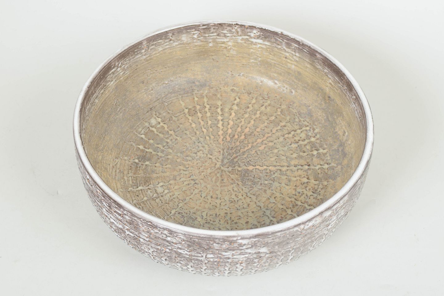Mari Simmulson for Upsala Ekeby, skål.Rund dekorativ skål model 6024 med tekstureret overflade i glaseret keramik med organisk relief og sølvfarvet finish.