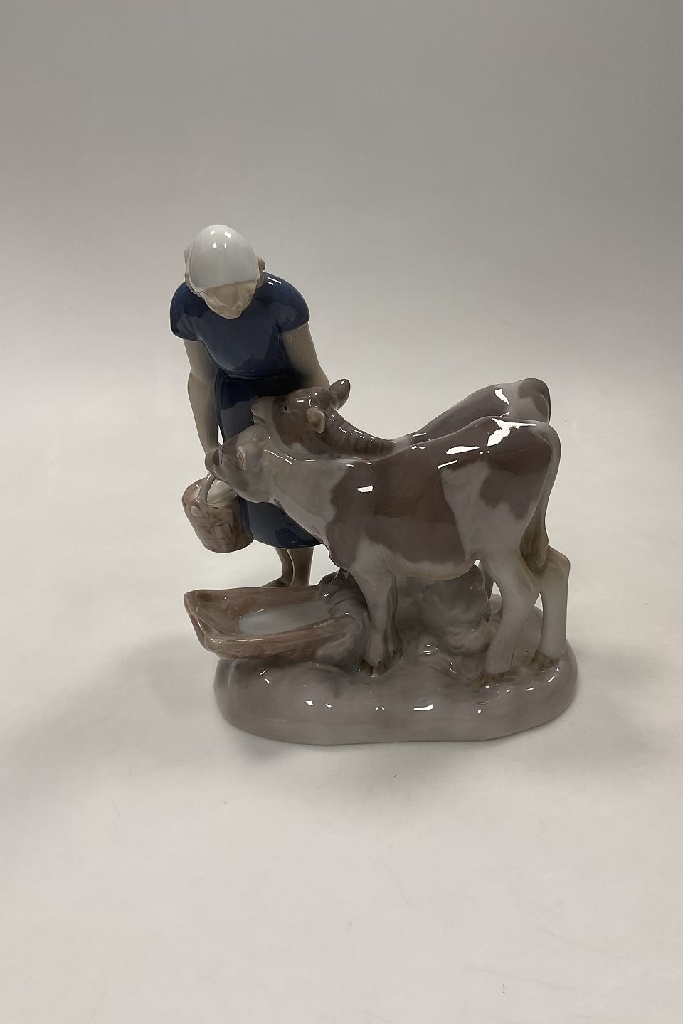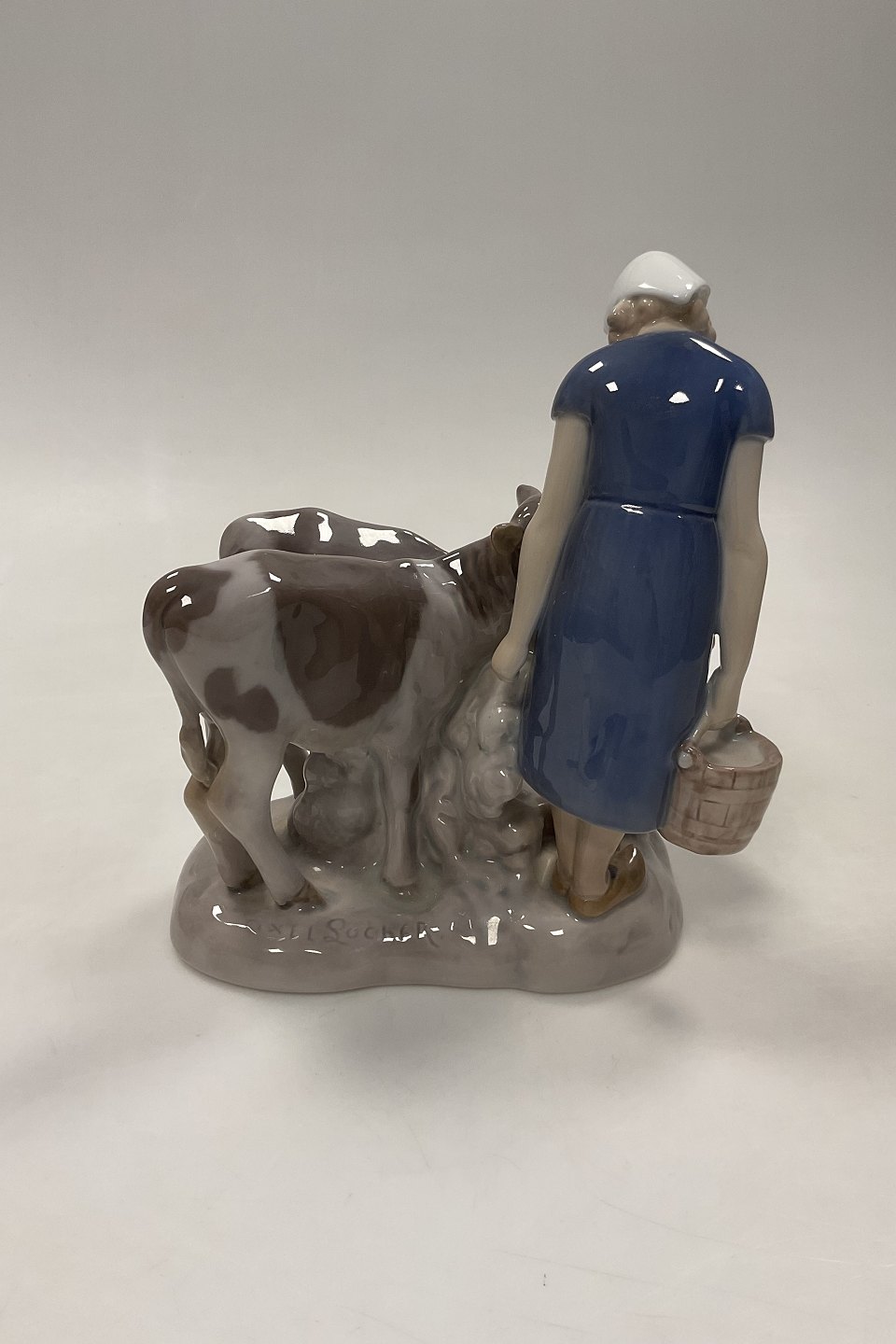 Bing og Grøndahl Figur Pige med Kalve No. 2270. Måler 21 cm (8 17/64 in.) og er i god stand. Designet af Axel Locher.Lager: 1