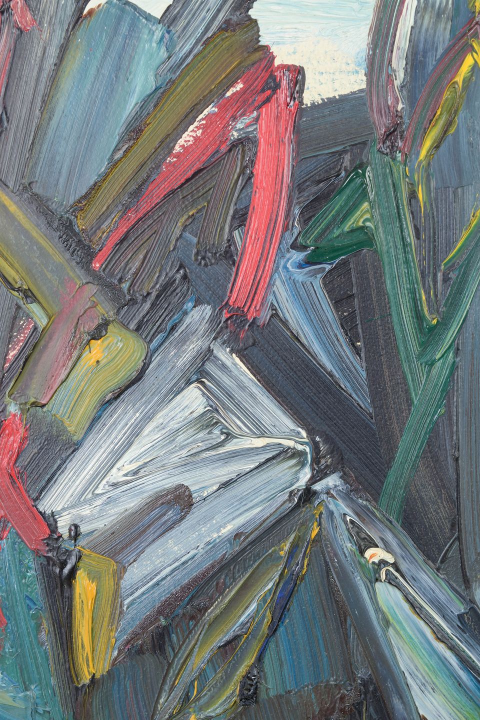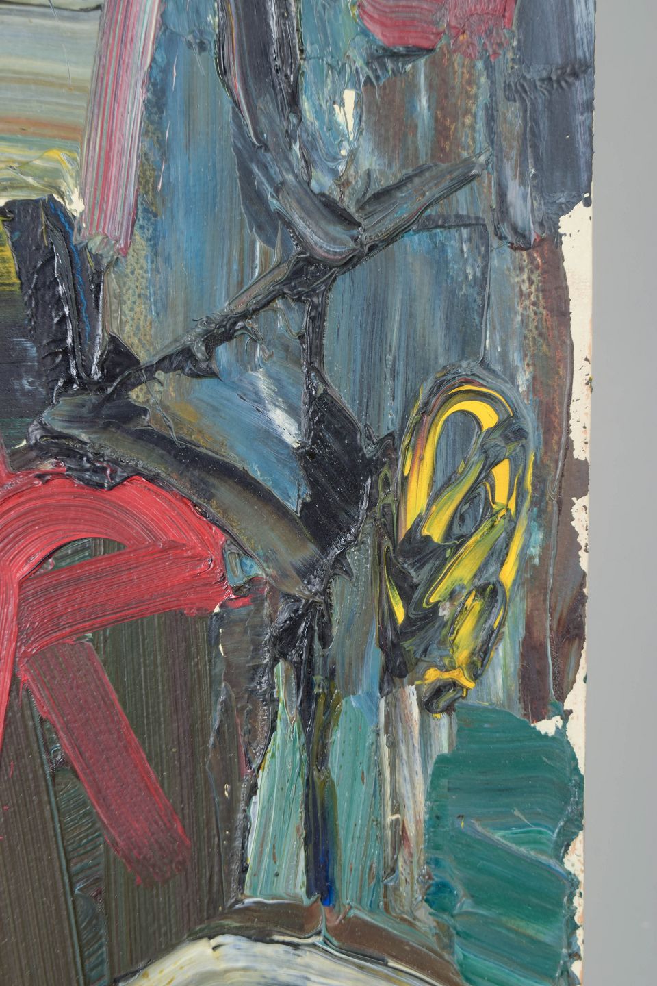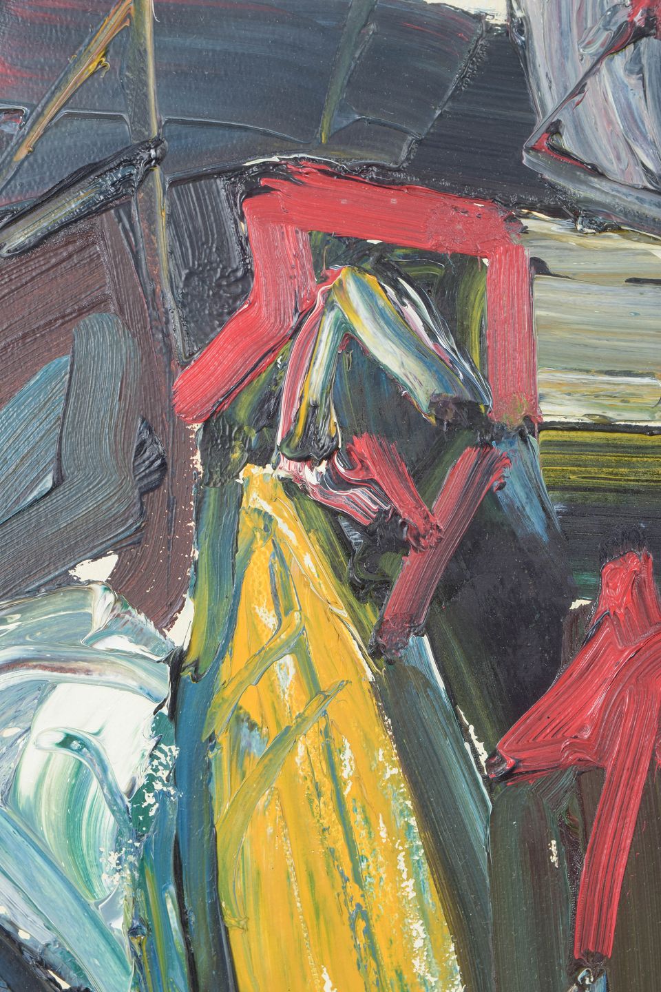 Åke Edwall, olie på plade, svensk billedkunstner.Ekspressiv abstrakt komposition udført med pastose penselstrøg og kraftfuld kolorisme, hvor modernistiske former og spontan gestik skaber et dynamisk billedsprog.
