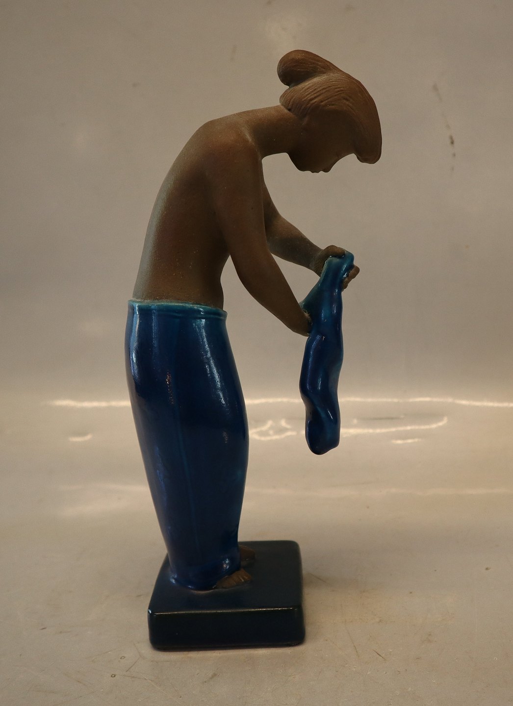 Johannes Hedegaard Royal Copenhagen stentøj 21424 RC "Martha" Kvinde med klæde 26 cm, JH, December 1956 I fin og hel stand Turkis glasur og chamotteFuglsangsgade 4