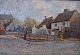 Maleri af Einar Gross (1895-1960) Billede af landsbyen, med høns, ...