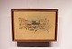 Tegning af gadeliv i glas og ramme. Kunstner: Peter Tom-Petersen, ...