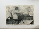 Lise Færch (1918-99): Parti fra Korup Kirke ved Odense. Tusch ...