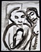 Skandinavisk kunstner Komposition med siddende figur ved vaskefad. Kridt ...