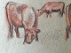 Torkil Norél (1922-2009): Liggende okser. Kul/hvidkridt på ...
