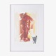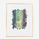 Multifarvet radering på sort baggrund i hvidmalet træramme med ...