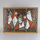 Patchwork billede med motiv af fire høner. Maskinlavet. Signeret ...