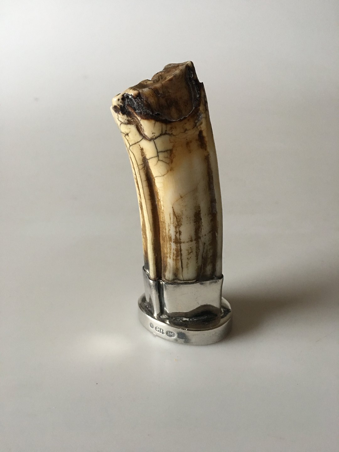 Evald Nielsen Signet Stamp in Silver with Hippopotamus Tooth. 3.5 cm dia (1 3/8"). 10 cm H (3 15/16")