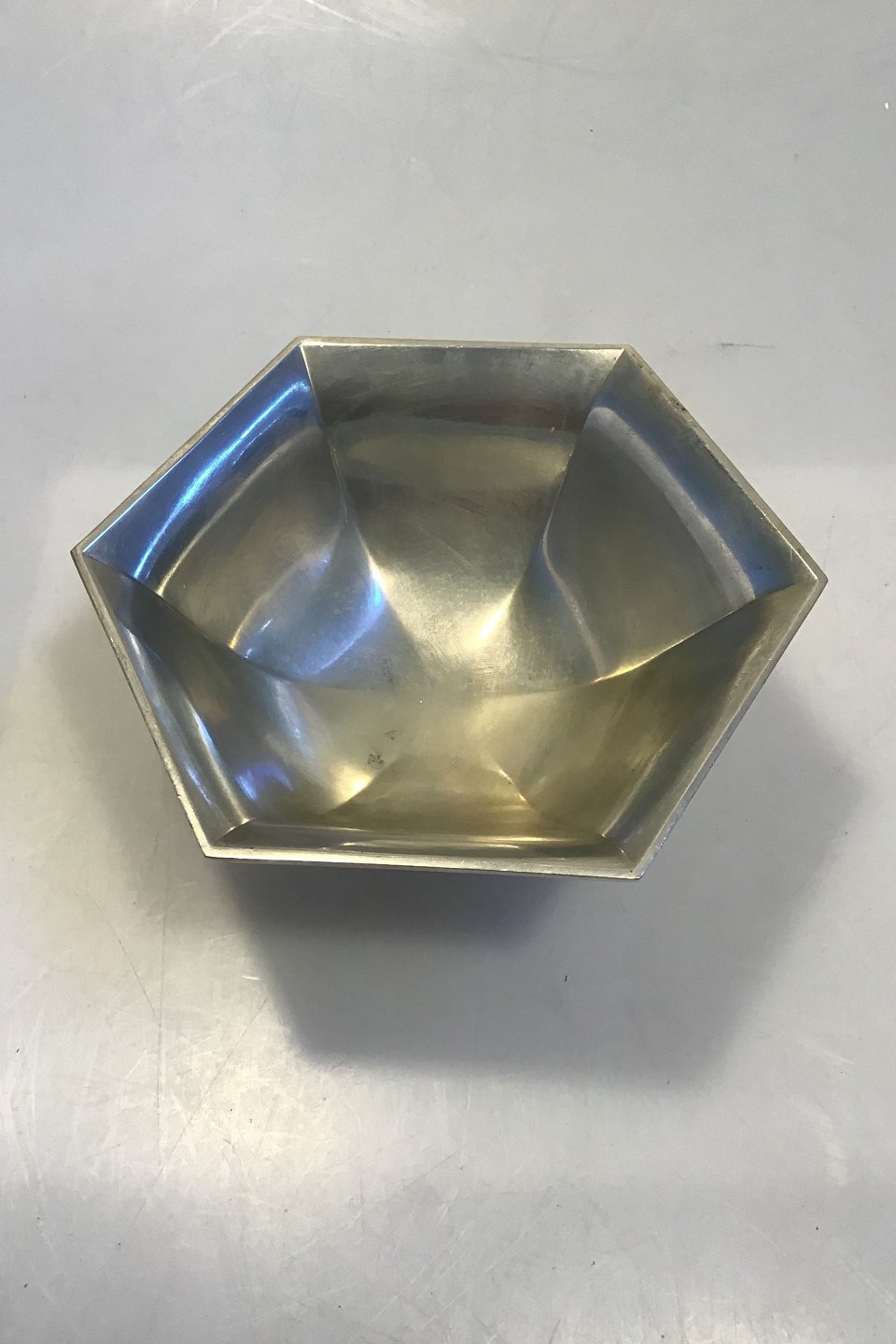 Just Andersen Pewter Hexagonal Bowl No 1290 Measures H 7 cm(2 3/4 in) Diam 15.5 cm(6 7/64 in)