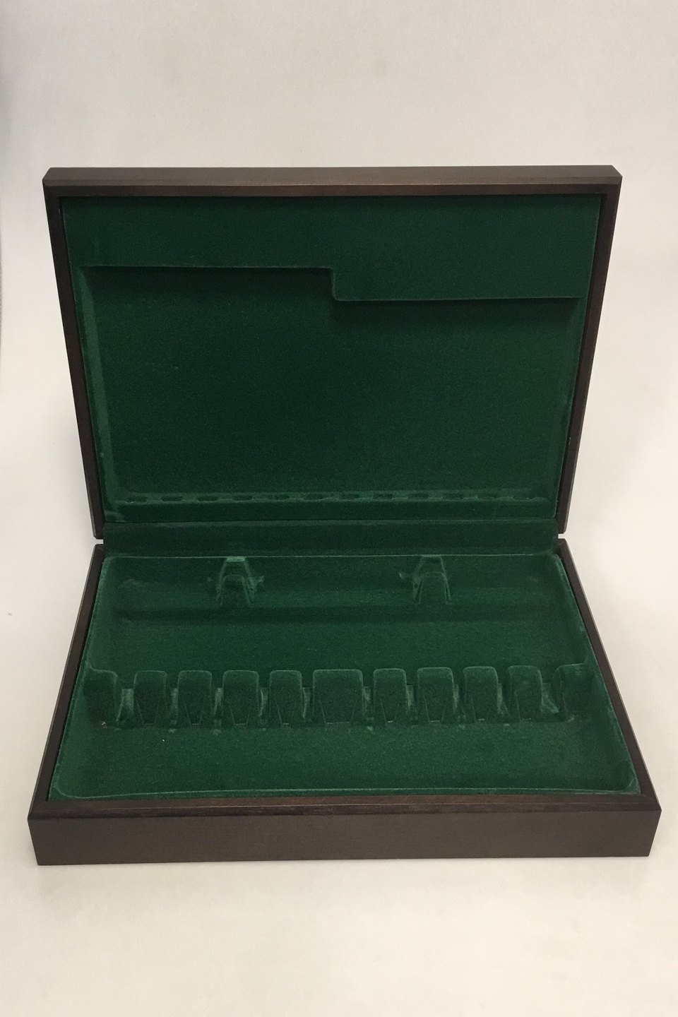 Bestikkasse af mørkt træ med plads til bestik til 6 personer/44 dele. Måler 39 cm x 28 cm x 8,5 cm