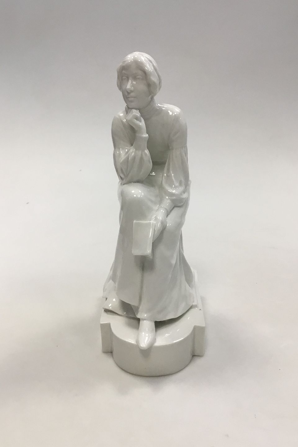 Royal Copenhagen Blanc de Chine Figur, "Eftertænksom kvinde der læser" Designet af Christian Thomsen No 435. Måler 22 cm(8 21/32 in.)