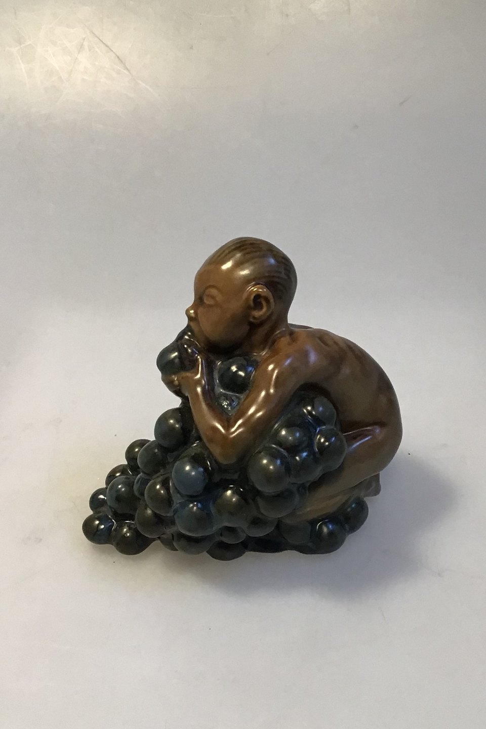 Bing & Grøndahl Figur af Kai Nielsen "Lille Bacchus med druer" No 4021 fra Druehøstserien. Designet i ca. 1915. Måler 9.5 cm(3 47/64 in)