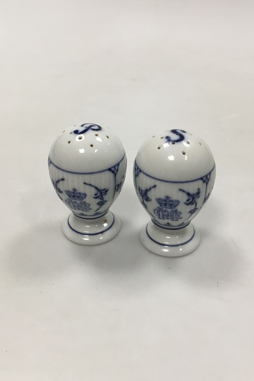 Royal Copenhagen Musselmalet Riflet Salt og -pebersæt No. 189/2009 med logo. Måler 7,5 cm (2.95 in.)