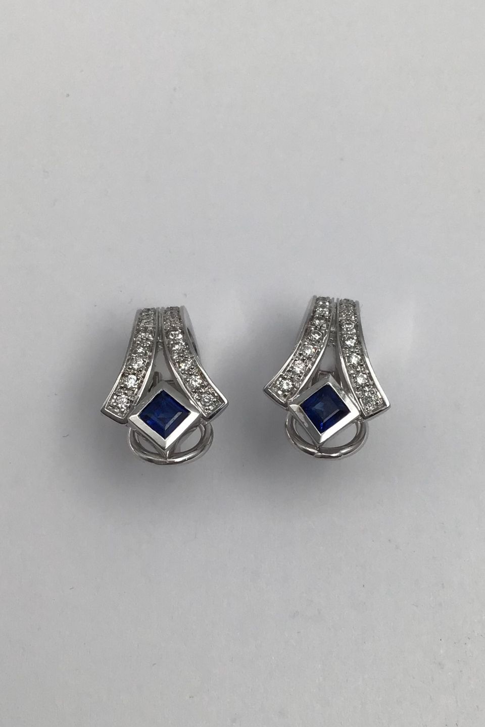 Danish 14 K Whitegold Ear Studs w Saphir & Diamonds
