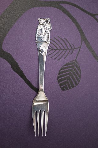 Barne gaffel i sølv (stemplet) med børnemotiver på skaftet af H. C. Andersen ...
