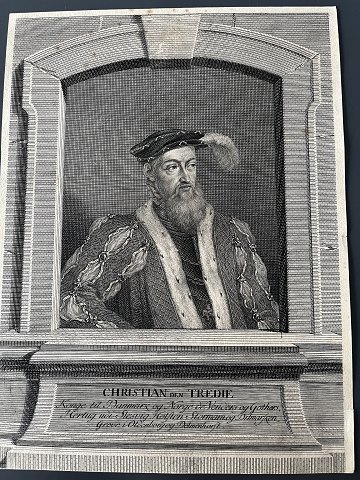 Kobberstik - Portræt af HM Kong Christian III af Danmark og Norge.