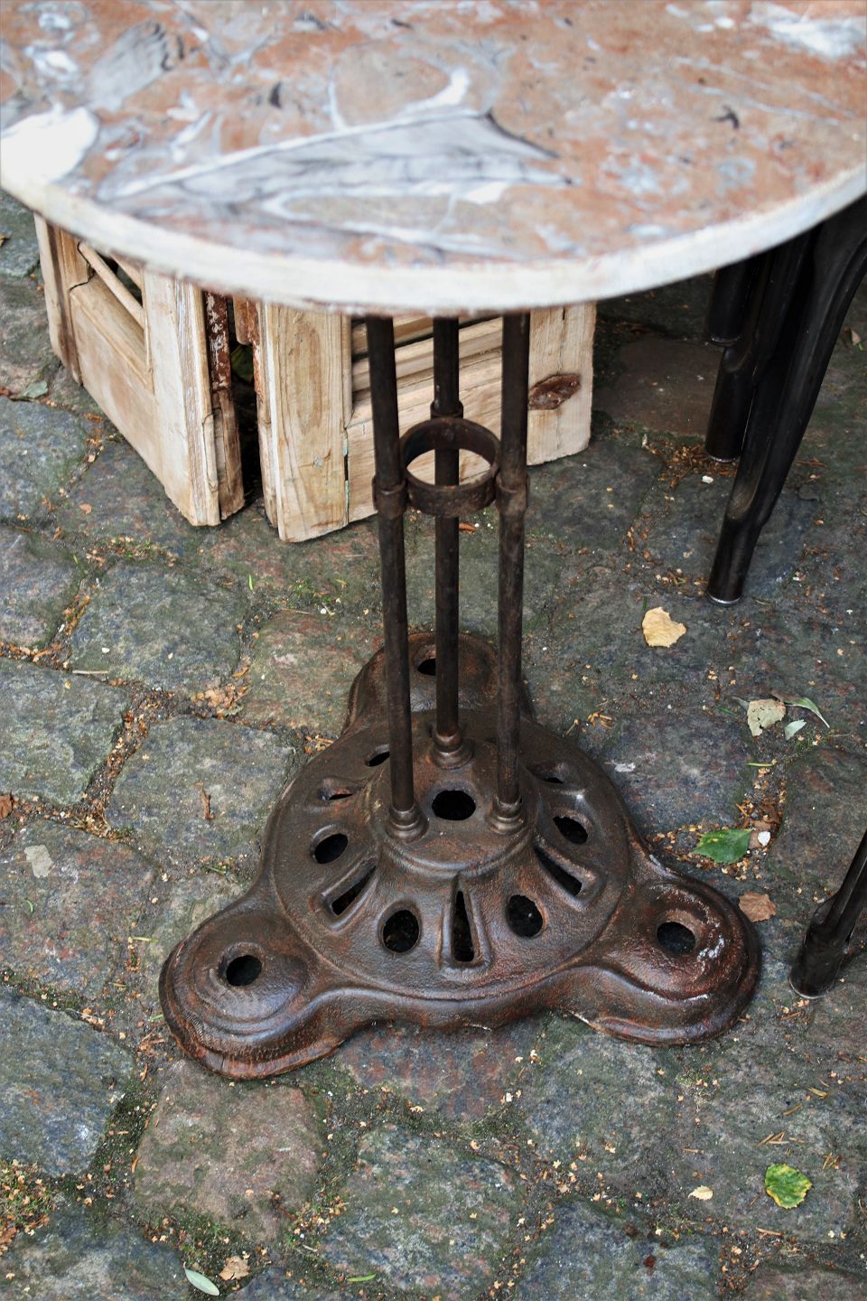Old French cafe table with fine cast iron base and marble top with a really nice patina...