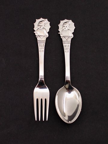 H. C. Andersen Eventyr Barnegaffel i Sølv. Den Flyvende Kuffert Horsens