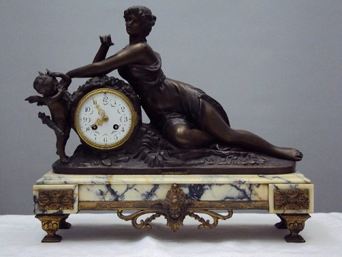 Very well kept French Empire vase shaped mantle clock of gilt and patinated bronze. Height 43 cm. Produced approx. 1810th