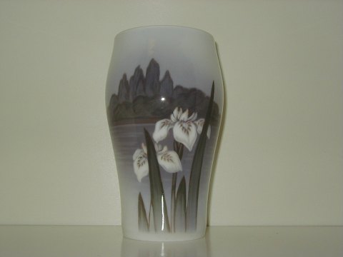 Stor Lyngby Vase med motiv af hvid dansk kirke