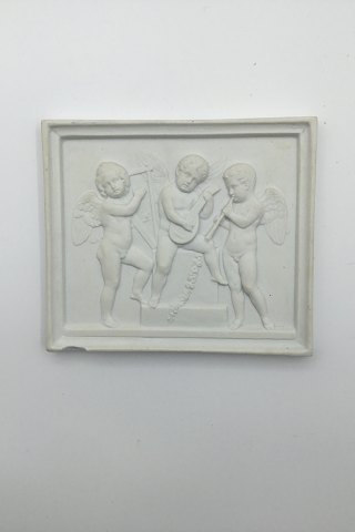 Description: Royal Copenhagen Bisque Plate Playing engels No 87. Copy from 1850 done by O.H.B.Olrik after Thorvaldsens original from Rom 1833. Measures 12 x 10cm (3.93 x 4.72 inch). Chip in the bottom left corner.