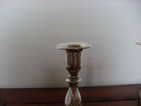 : Par danske sølvstager. 16 cm. høje. Den ene lysestage fremstår med lille bule på manchet.