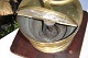 : Stor kaffemølle af træ med messing montering. Højde 32cm. Bredde 18 X 17cm. Funktionsdygtig stand.