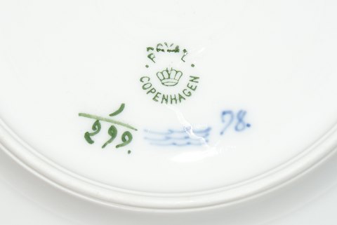 Beskrivelse: Kongelig Musselmalet Riflet, Sildetallerken, Hel flad