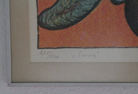Beskrivelse: Henry Heerup Litografi "Svanen" Signeret og nummereret 251 af 500. Original grafik i aluramme 51 x 38 cm
