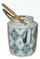 Beskrivelse: Royal Copenhagen Gemina, Ottekantet tepotte med bast håndtag