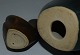 Beskrivelse: To tukan i keramik af Knud Basse i brun glasur. Signeret med kunstnerens initialer KB.