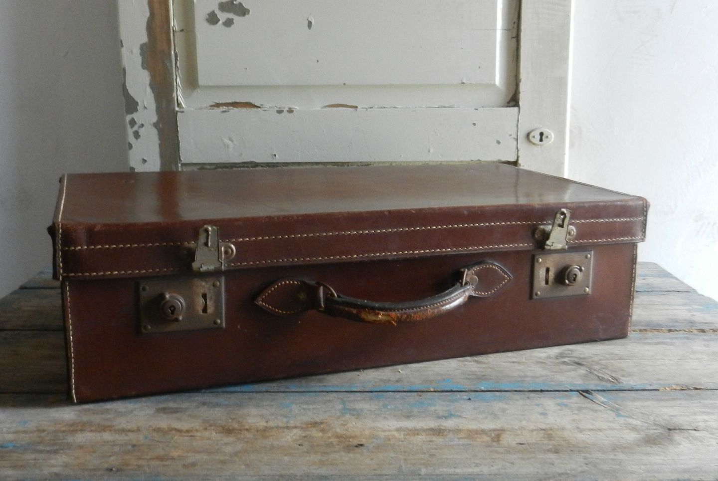 Beskrivelse: Lækker gammel læder kuffert, fremstår med god patina!