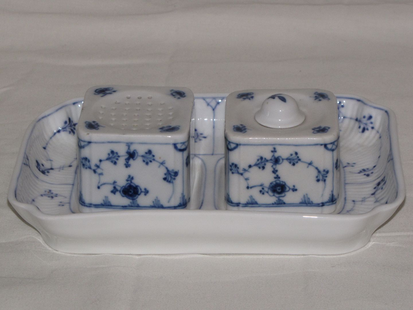 Description: Blue Fluted Plain writing set with dish from Royal Copenhagen.