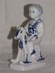 Description: Blue Fluted Plain Figure, girl on a rocking horse from Royal Copenhagen. Number 5196. 1 sorting. Made by Hanne Warming