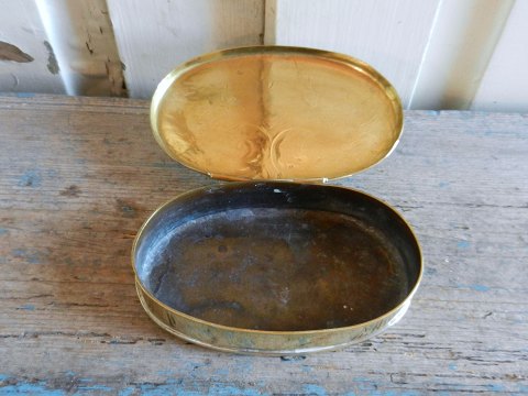 : Smukt graveret tabatier i messing fra midten af 1800tallet.