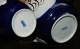 Beskrivelse: Blå tepotte uden låg samt ditto flødekande, begge med personligt (ubekendt) monogram i porcelæn fra Royal Copenhagen. Fremstillet mellem 1840-1860. Begge dele fremstår i god stand uden skader eller reparationer. Flødekanden er 9½ cm høj