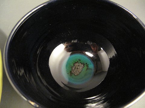 Beskrivelse: Bjørn Wiinblad. skål og fad. formentlig fra Illum bolighus. begge dele har nogle små afslag, det gule fad måler 29 cm og koster 600, den mørke blå skål er solgt
