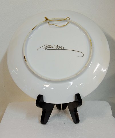 Mindeplatte i porcelæn med signatur på bagsiden.
