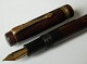 Description: Bordeaux "snakeskin" Skribent Vacuum fountain pen. Manufactured in Denmark in the late 1940s. Piston filler. Filling mechanism does not work. Will have to be repaired before the pen works again. The small "blind cap" at the end of the pen with faulty. Also u-orginal nib in 14 carat gold. The pen is 13 to 13.5 cm long.