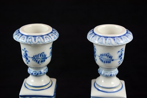Et par Kgl. musselmalet riflet lysestager med løvehoveder.