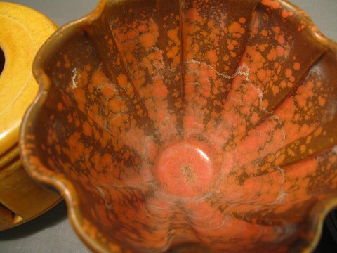Beskrivelse: 6 stk flot Kåhler i god stand. 3 vaser / urtepotter 2, skåle / fade, og en gul en til et fyrfads lys.