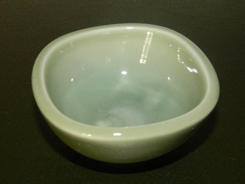 Beskrivelse: Lille skål i stentøj dækket af celadon glasur af Nils Thorsson for Royal Copenhagen. Dekoreret med fisk i bunden af skålen. Fabriksmærke samt kunstnersignatur på bunden. 1. sortering. Ingen skader eller reparationer. Mål: 4½ cm høj og 9 cm x 9 cm i åbningen.