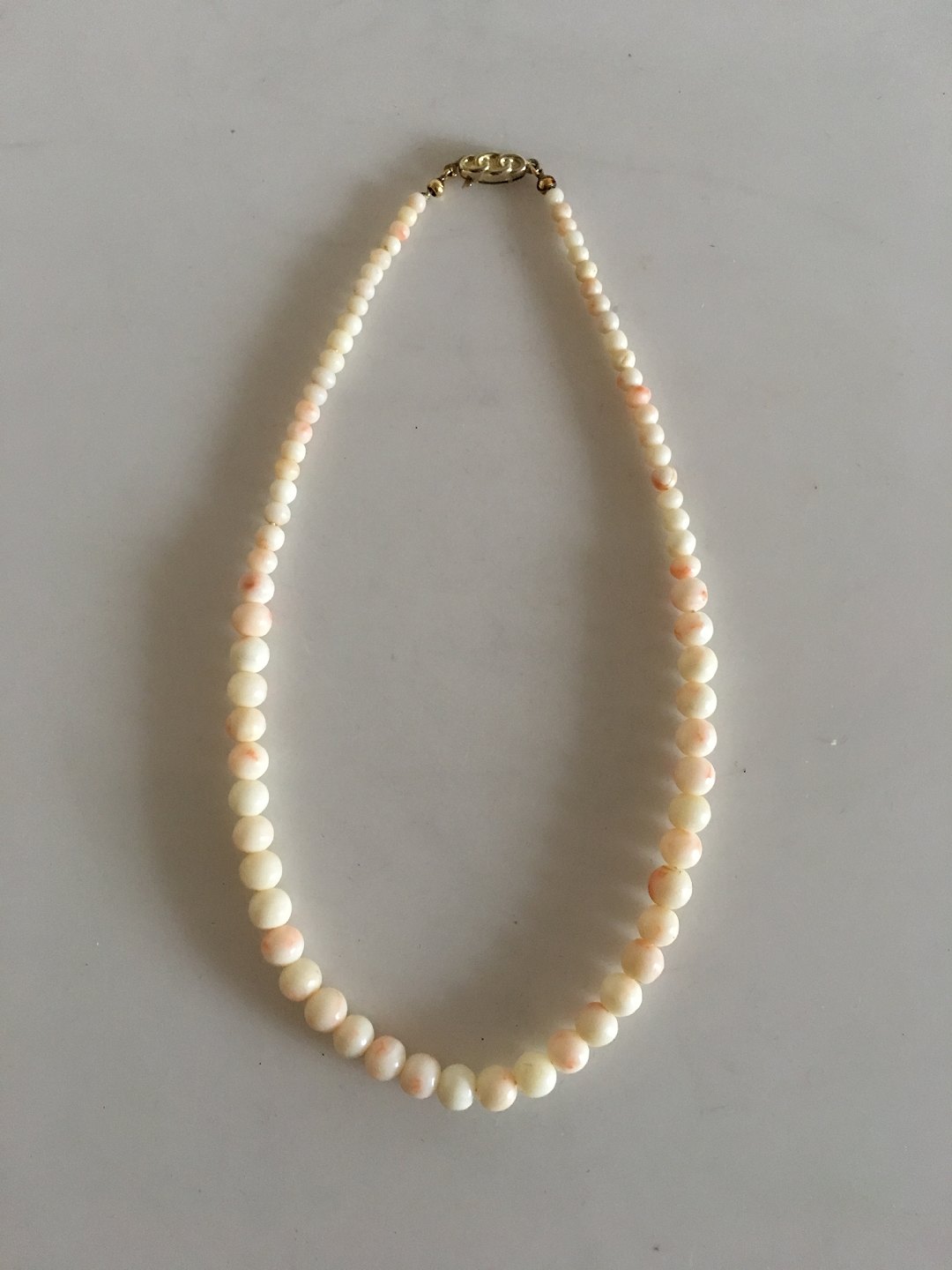 Beskrivelse: Perlehalskæde med Elfenben og Lås i Forgyldt Sterling Sølv. Måler 37 cm. I fin stand.
