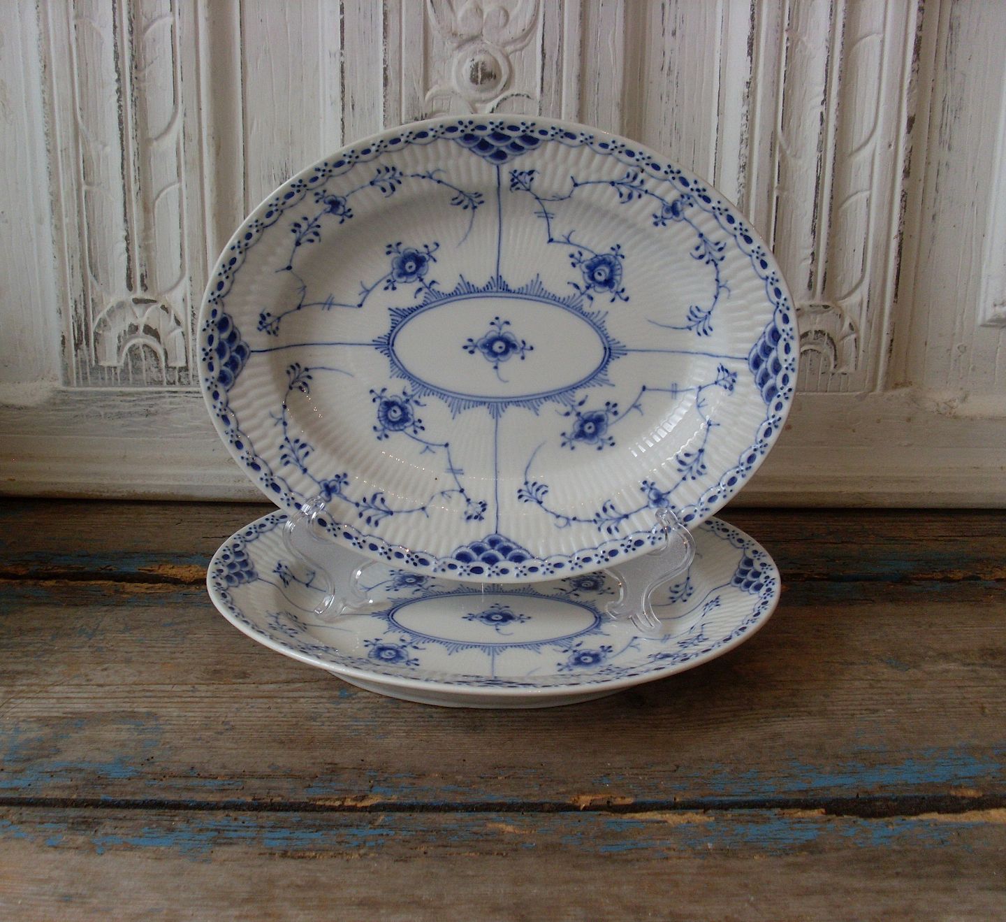 Beskrivelse: Royal Copenhagen Musselmalet halvblonde fad