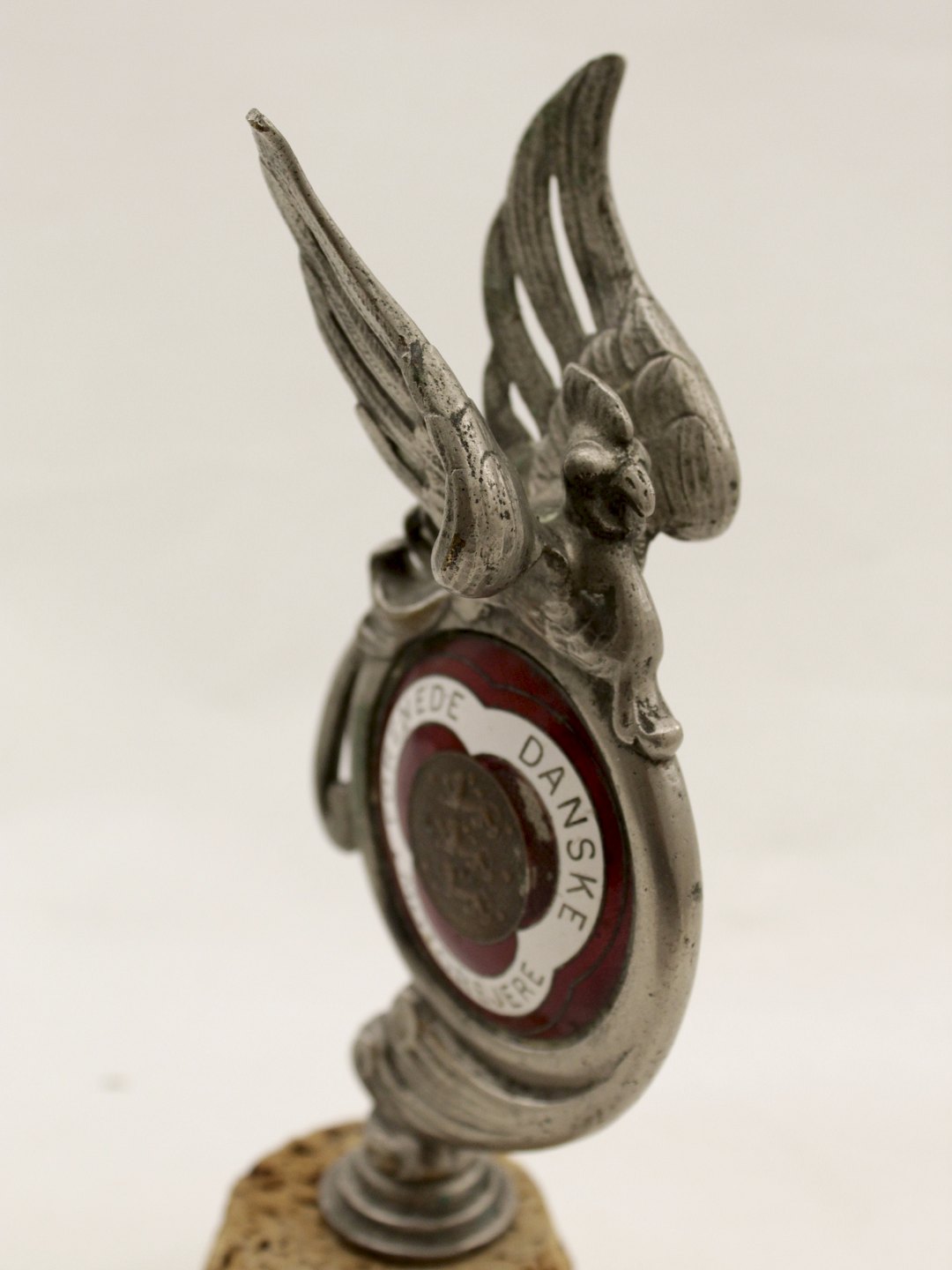 Beskrivelse: Vintage Forenede Danske Motorejere kølerfigur Nr. 296872