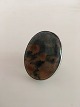 Beskrivelse: Georg Jensen Sterling Sølv Ring No 90D med Oval Orange og gråmeleret Sten. Ringstørrelse 48. Stenen måler 3,5 cm x 2,5 cm. Vejer 16 gram. Lavet efter 1945.