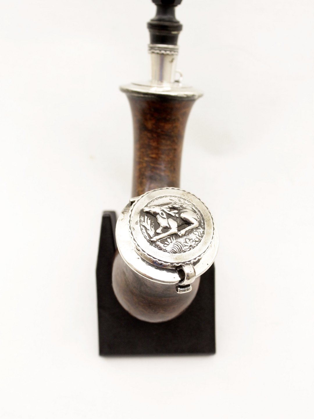 : Gammel langpibe L. 60 cm. med sølv beslag Nr. 310263