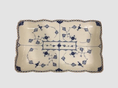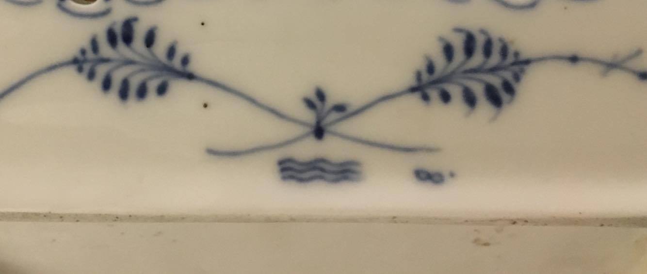 : Musselmalet fad fra 1870-1890. Lille afslag.