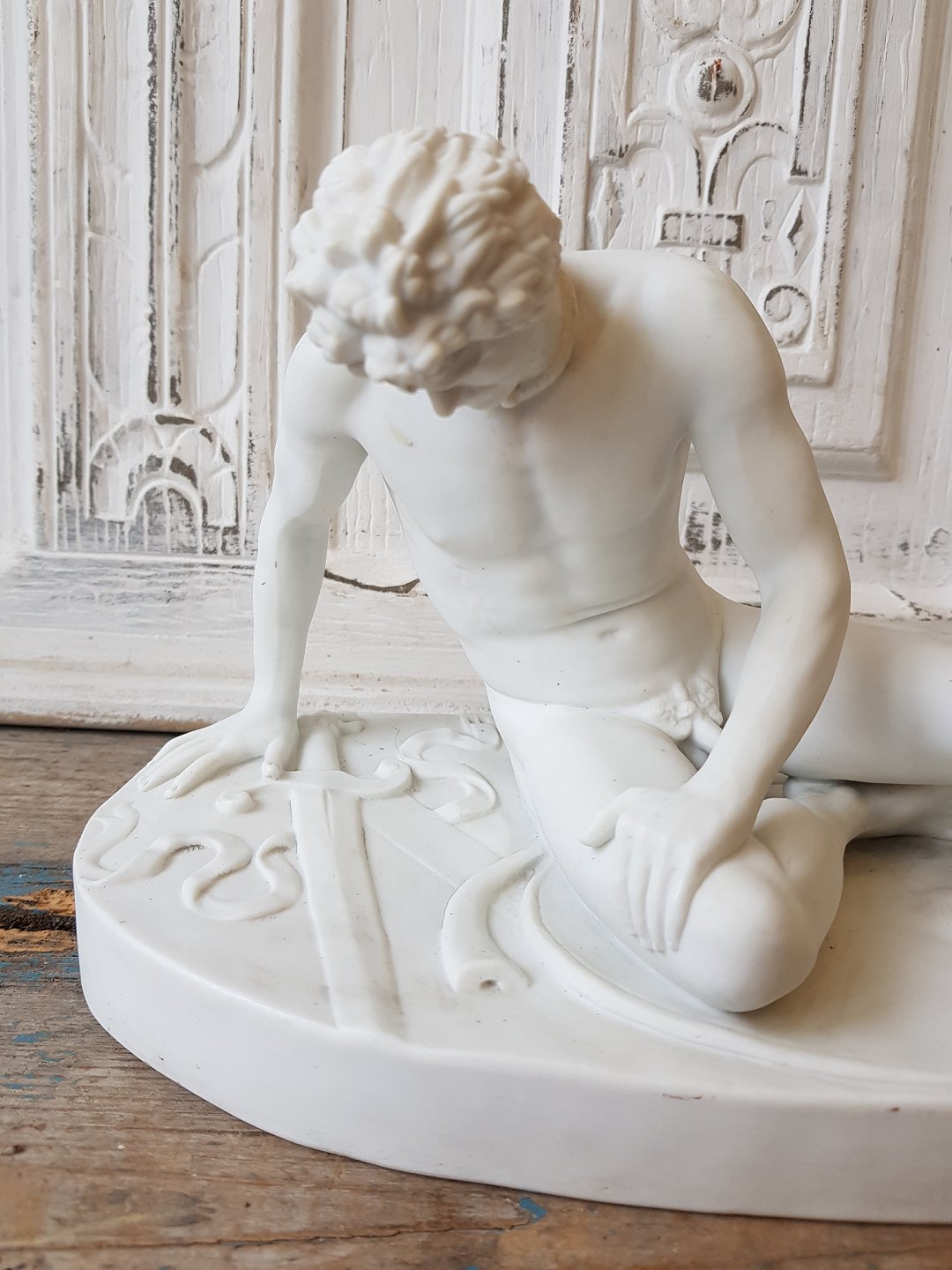 Beskrivelse: B&G biscuit figur "Døende fægter"